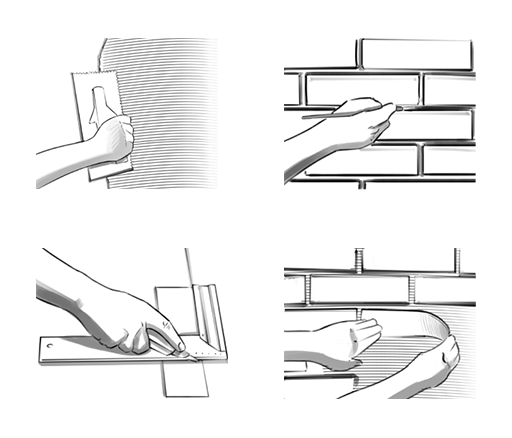 რეკომენდაცია: აგურის წყობა ყოველთვის იწყება ან კუთხიდან ან ღიობებიდან, ზემოდან ქვემოთ მიმართულებით.